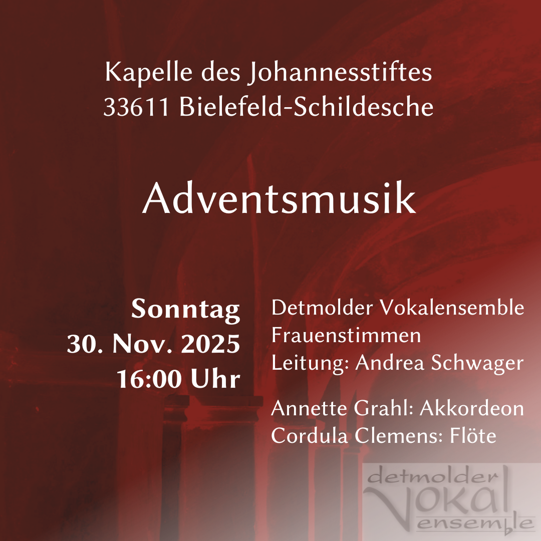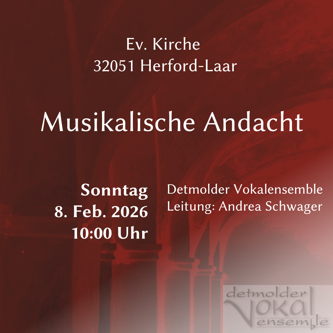 Nicht oft hört man geistliche Chormusik auf so einem hohen Niveau. Klangliche Qualität ist das oberste Ziel des Detmolder Vokalensembles, gepaart mit gestalterischer Interpretation des Textes. Lassen Sie sich mittragen in die Welt der Klänge – bei einem unserer nächsten Konzerte.